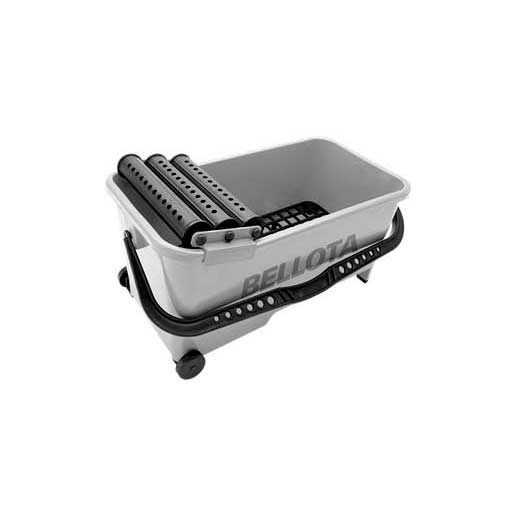 Cubo profesional de limpieza de alta resistencia, con capacidad máxima de 20 litros, tres rodillos escurridores y una rejilla en la base que facilita sedimentar la suciedad en el fondo. La base tiene pendiente e incorpora ruedas y asa para facilitar la movilidad y desplazamientos. Disposición en Box pallet. Para trabajos de limpieza en el rejuntado, alicatado y solado. 5800-3 – 220 x 265 x 515mm.
