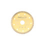 Disco de diamante pro7 general de obra, turbo para una mayor calidad de acabado y un corte más limpio que el disco segmentado. Fabricado con diamantes de gran tamaño y forma octogonal para conseguir un máximo rendimiento y fluidez en el corte. Segmentos soldados por láser que garantizan la seguridad en el uso, el disco cumple norma UNE-EN 13236. Uso en amoladoras angulares portátiles para corte en seco de materiales generales de obra que no tienen valores extremos ni en dureza ni abrasión, como tejas, tejas de hormigón, ladrillos, terrazo, bloques de hormión, baldosas, etc. 50712-115 – 115mm.